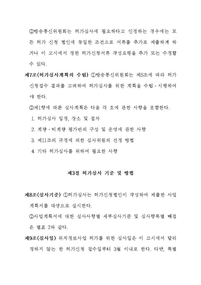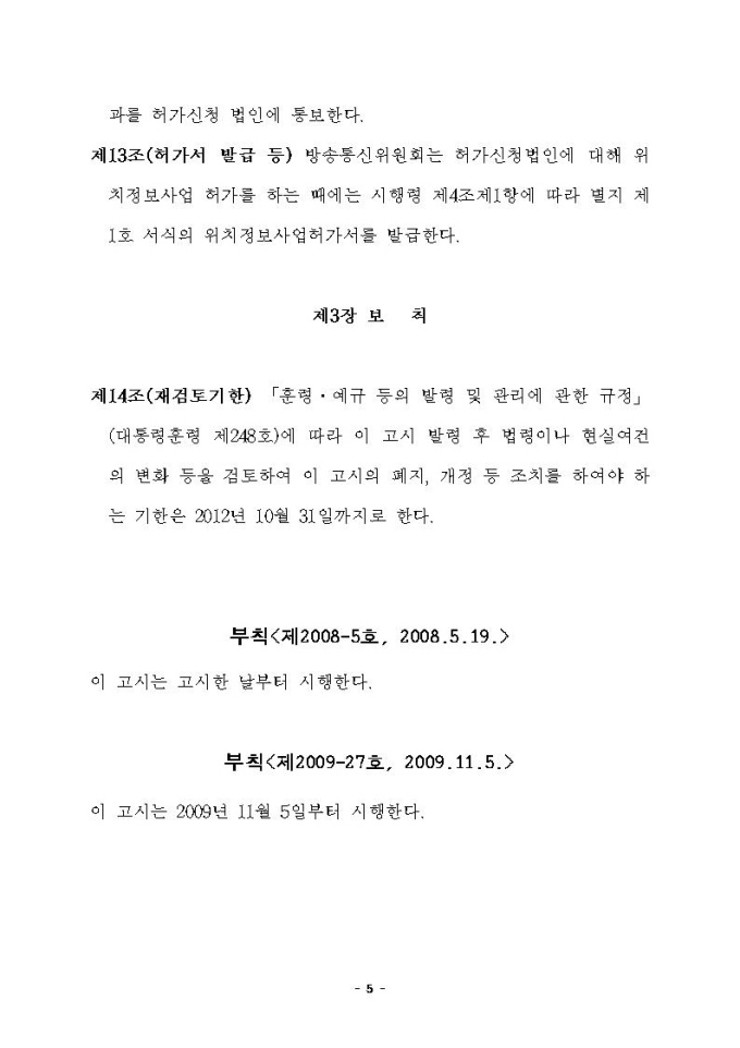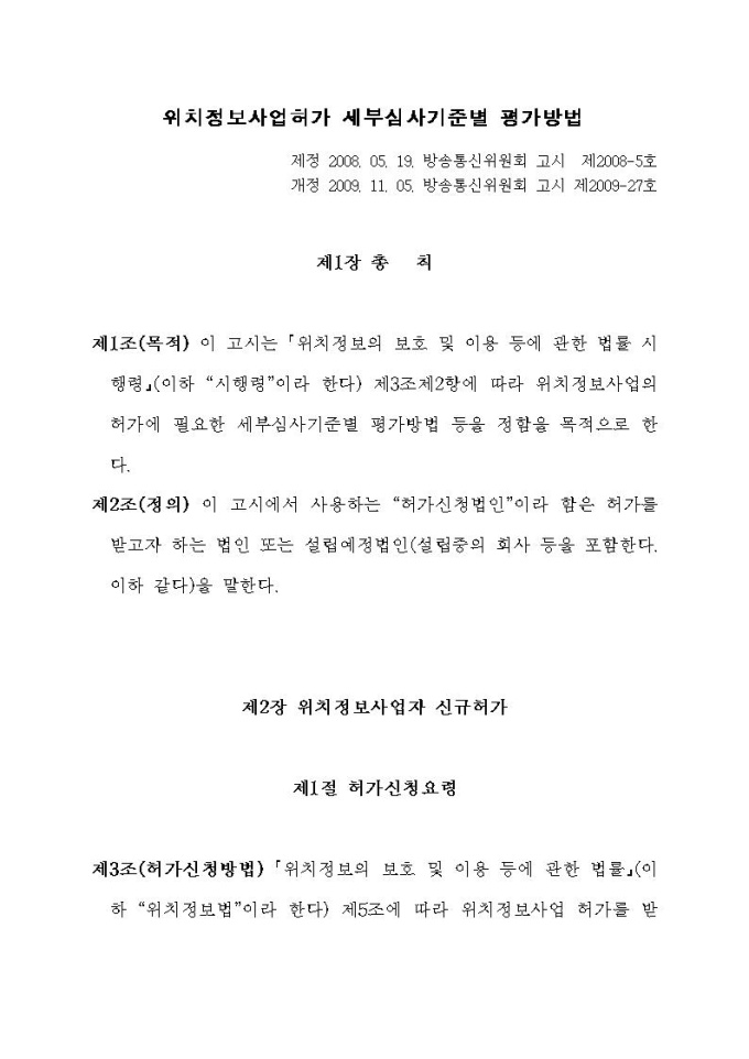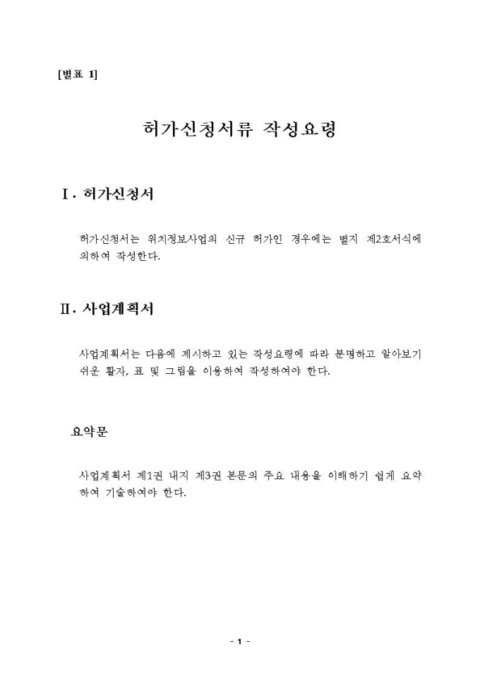 위치정보사업자인허가 신청서 작성요령 관련 고시