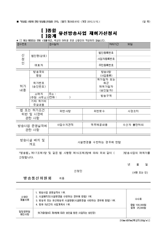 유선방송사업 재허가신청서