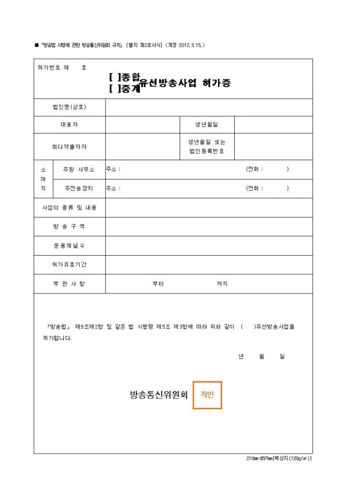 유선방송사업 허가증