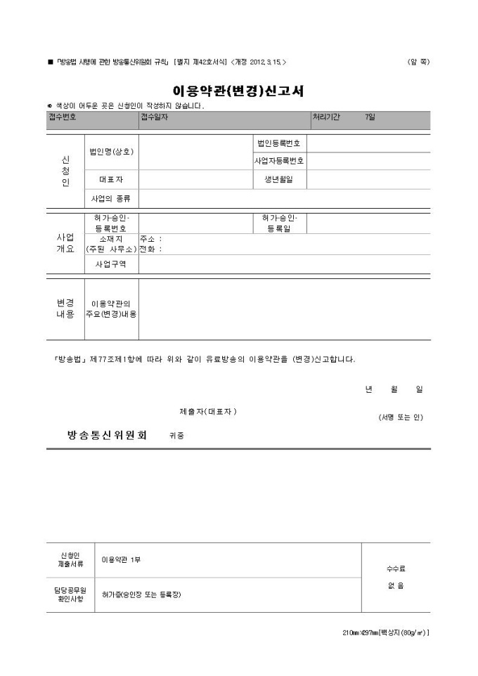 대한민국 정부가 사무의 간소화 및 정보화를 위해 제정하는 사무관리규정에 따라 배포하는 표준서식 입니다. 법규문서, 고시·공고 등에 쓰이는 공고문서, 허가·인가·승인·등록·증명에 관련된 민원문서 등 다양한 행정문서가 개정되었습니다.