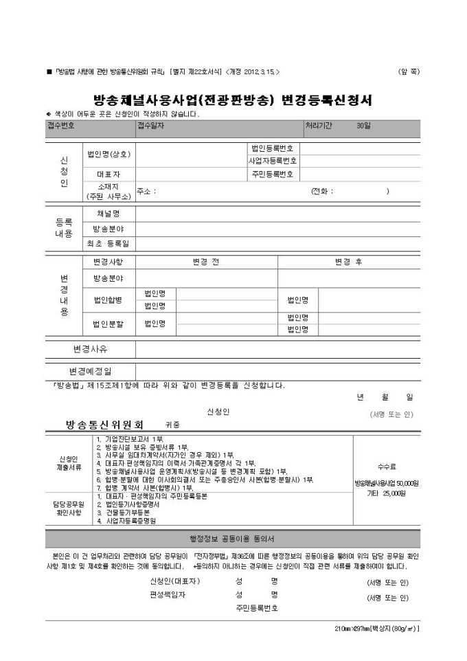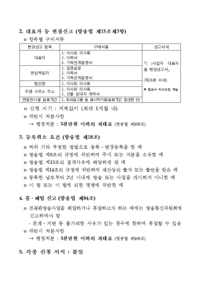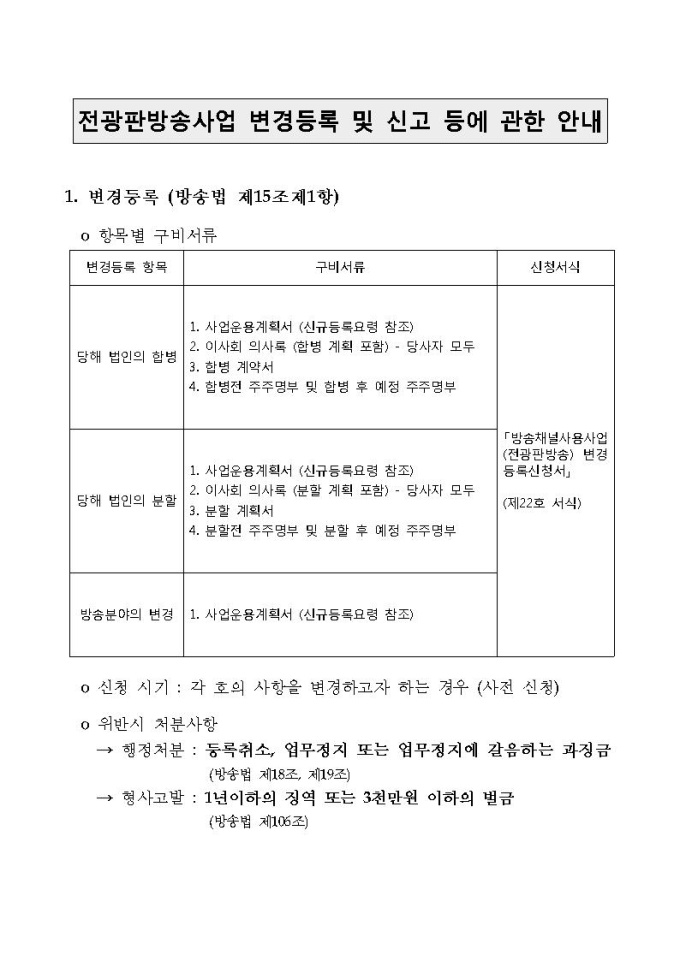 전광판방송사업 변경등록 및 신고 등에 관한 안내