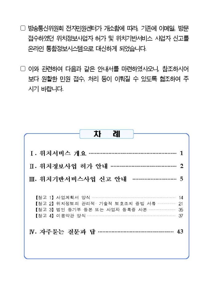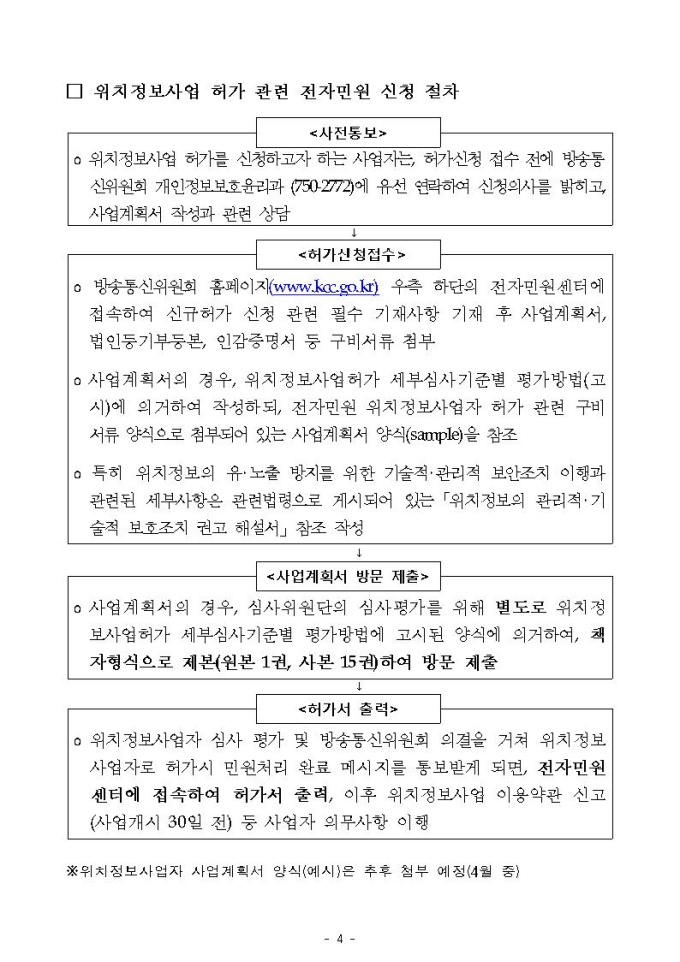 전자민원센터 개소에 따른 위치정보사업자 허가 및 위치기반서비스사업 신고 안내