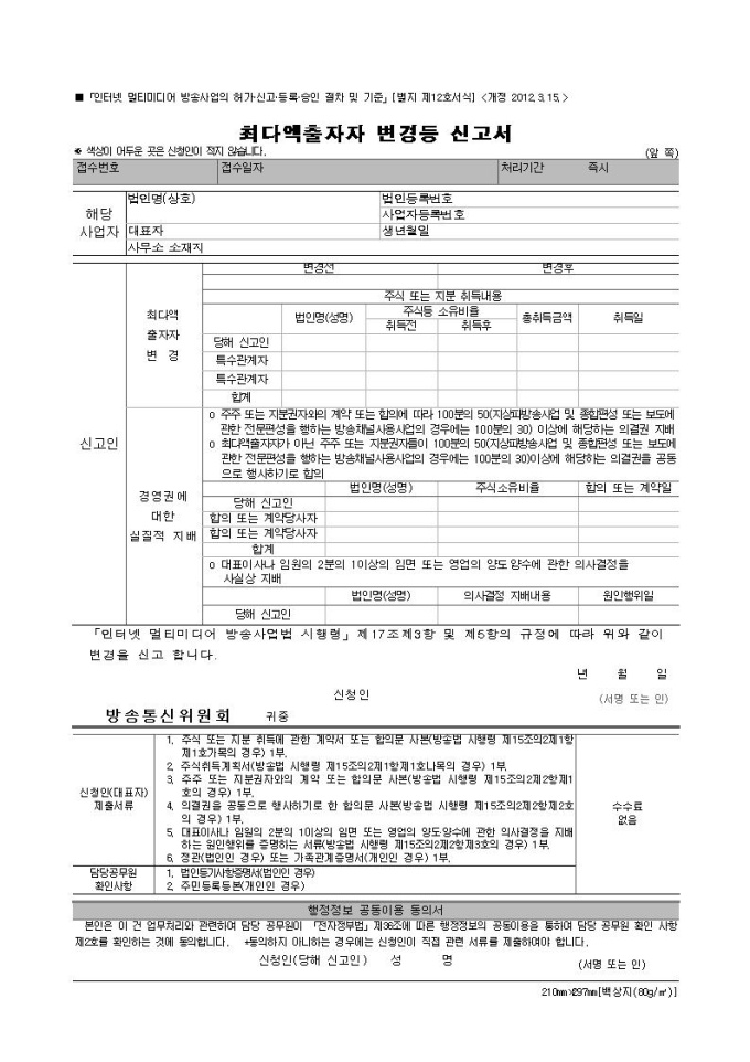 IPTV 콘텐츠사업_최다액출자자 변경등 신고서