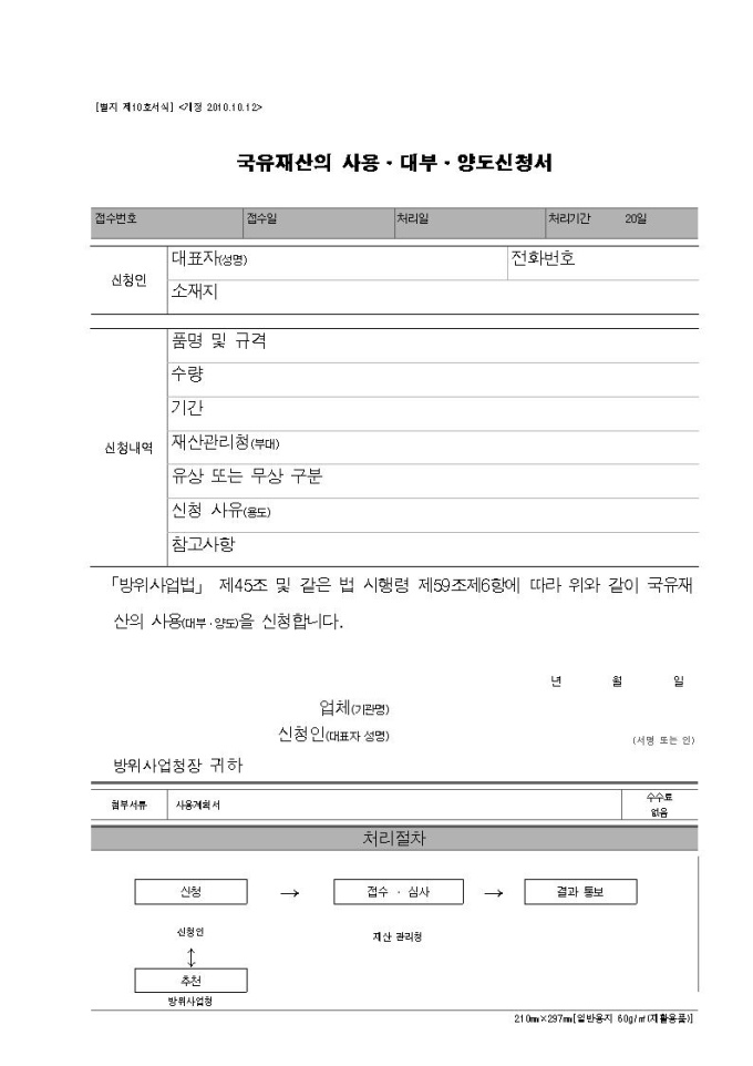 국유재산 사용허가 추천(방산업체, 전문연구기관)