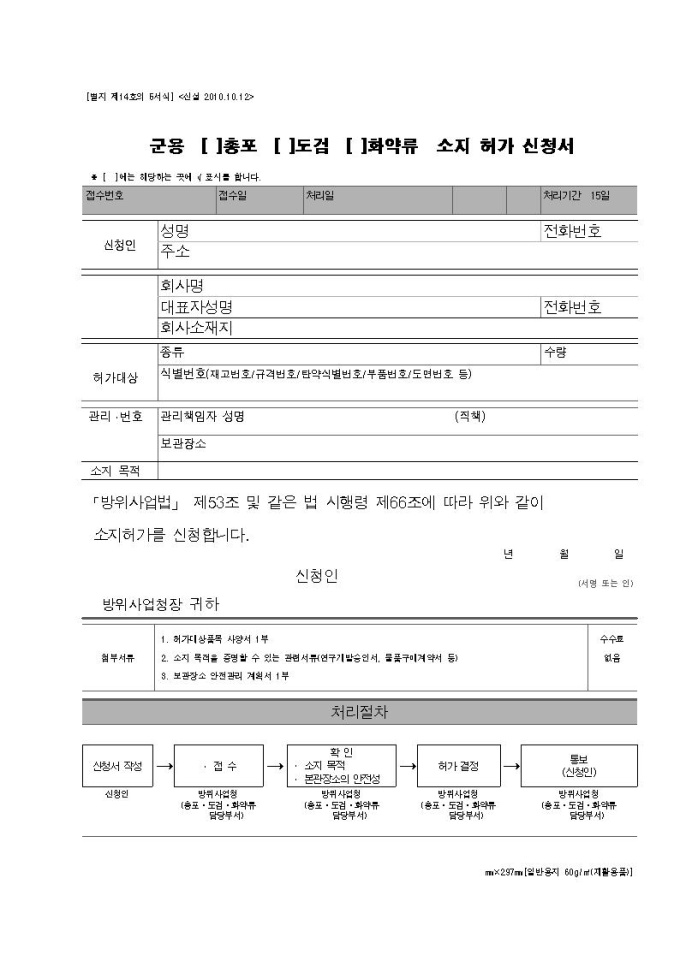 군용총포 소지허가