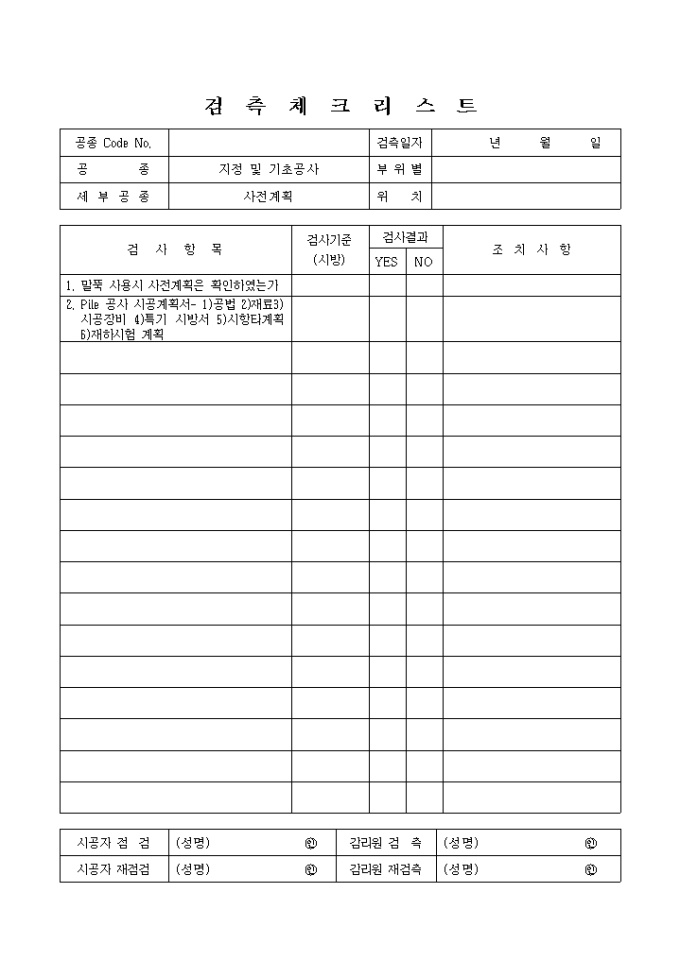 검측체크리스트(기초공사 사전 계획)