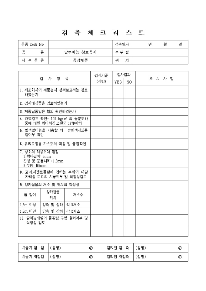 9,000원/월창호공사,공장제품② 체크리스트 입니다.