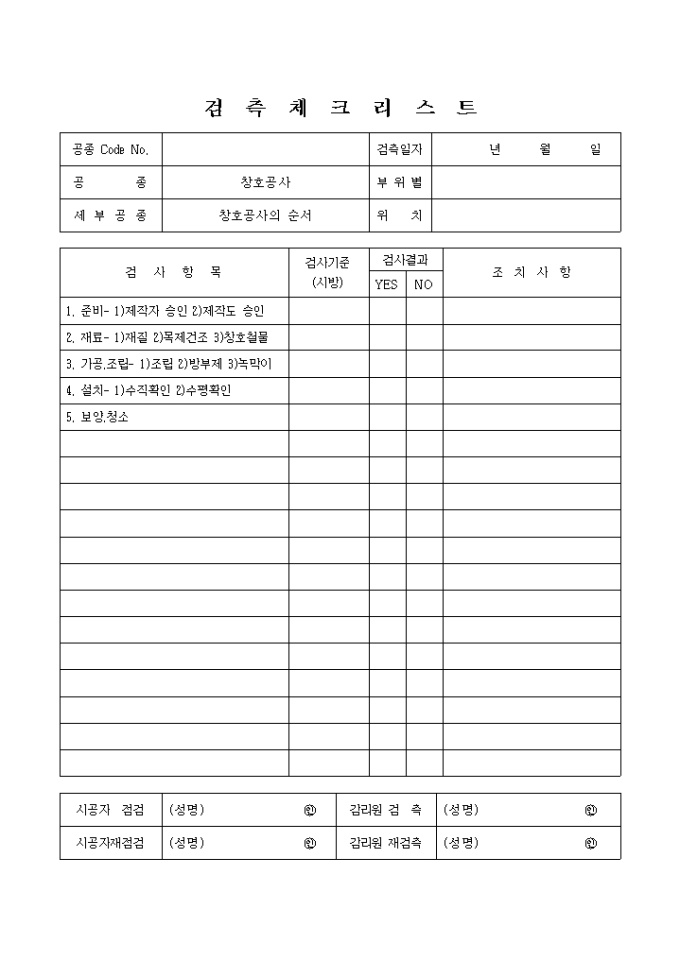 9,000원/월창호공사,창호공사의순서 체크리스트 입니다.
