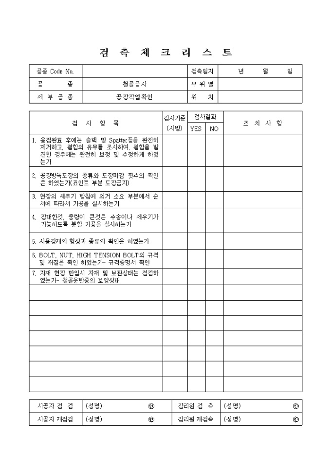 2. 공장방녹도장의 종류와 도장마감 횟수의 확인은 하였는가(죠인트 부분 도장금지)