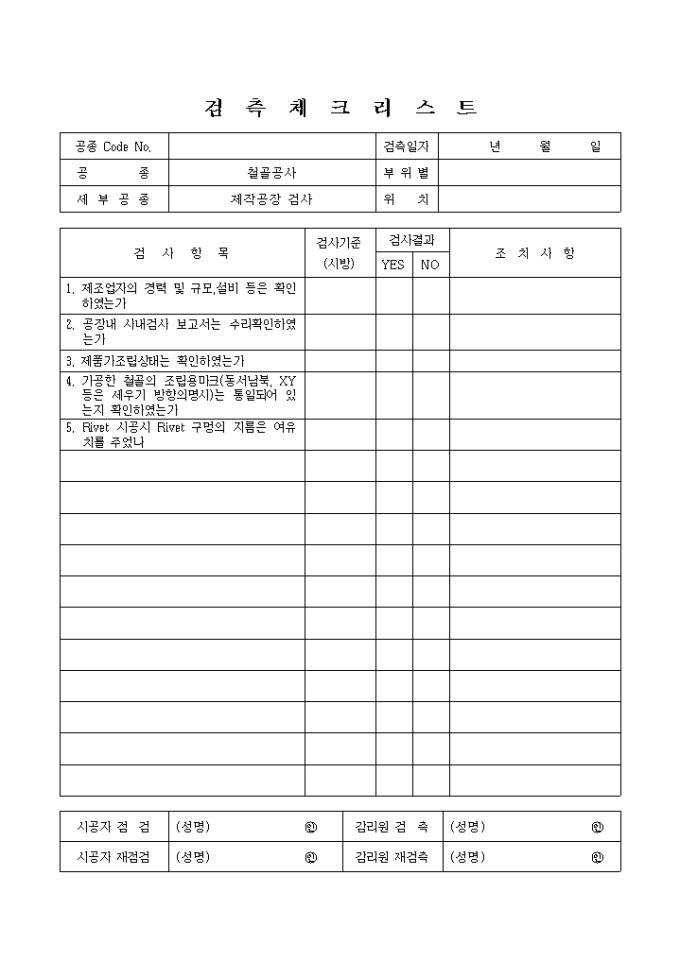 4. 가공한 철골의 조립용마크(동서남북, XY등은 세우기 방향의명시)는 통일되어 있는지 확인하였는가