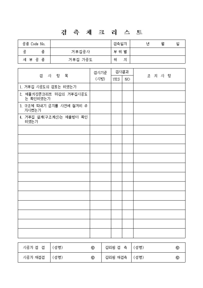 철근콘크리트공사,거푸집가공도 체크리스트 입니다.