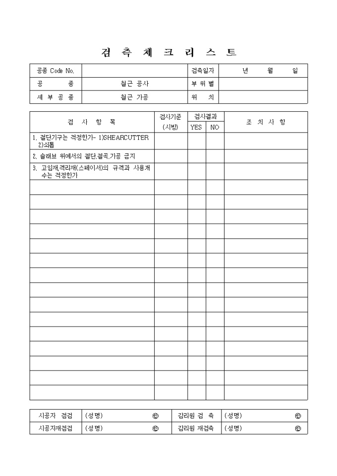 철근콘크리트공사,철근가공 체크리스트 입니다.