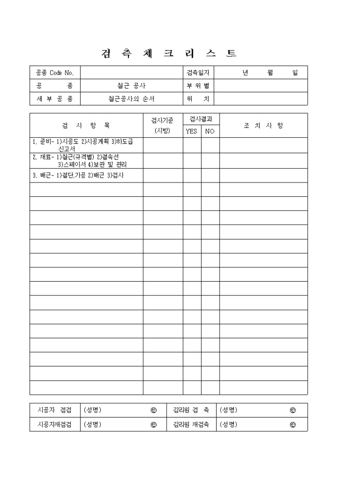 철근콘크리트공사,철근공사의순서 체크리스트 입니다.
