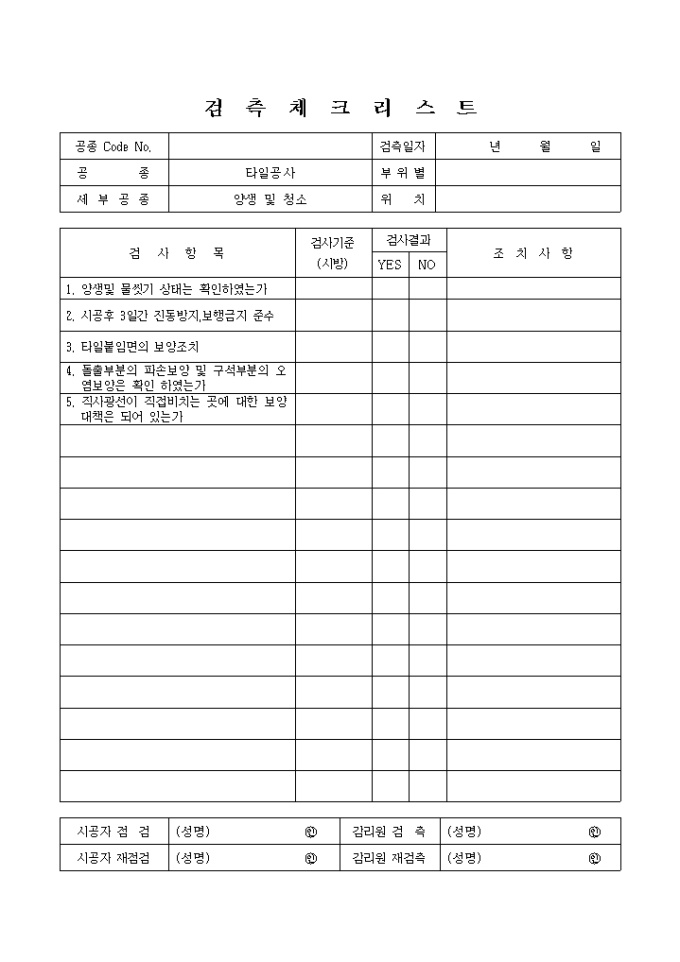 9,000원/월타일공사,양생및청소 체크리스트 입니다.