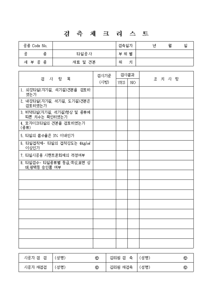타일공사,재료및견본① 체크리스트 입니다.