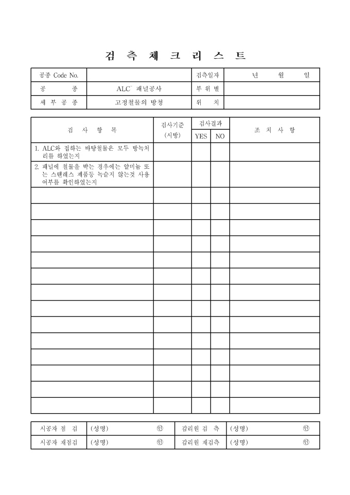 9,000원/월ALC블록및패널공사,고정철물의방청 체크리스트 입니다.