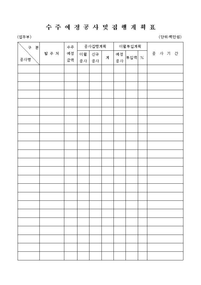 수주예정공사 및 집행 계획표