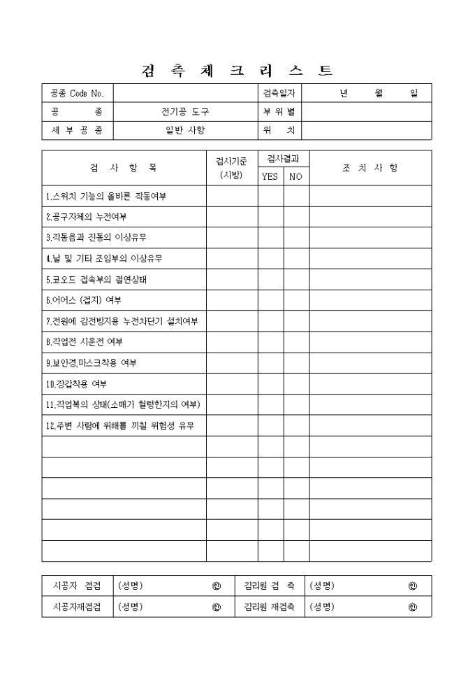 가설공구및장비,전기공구,일반사항ⓠ 체크리스트 입니다.
