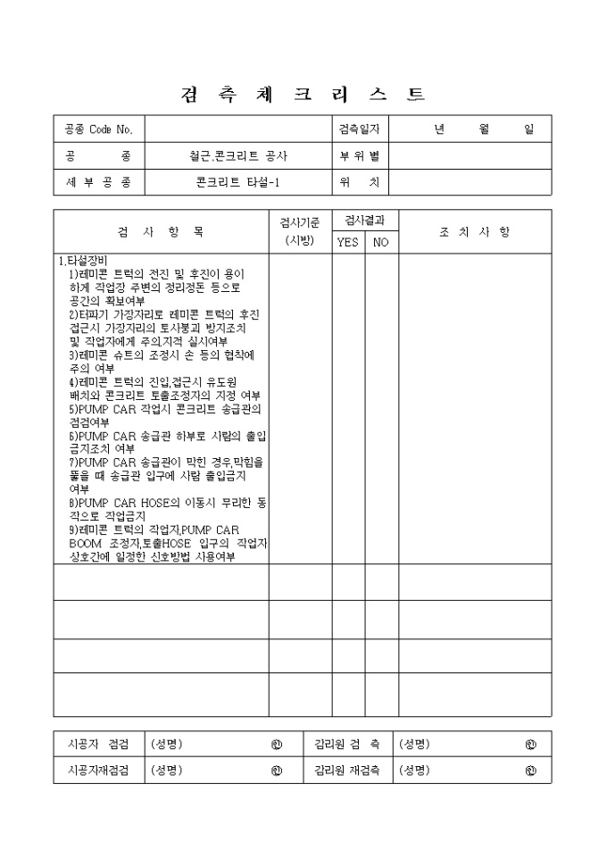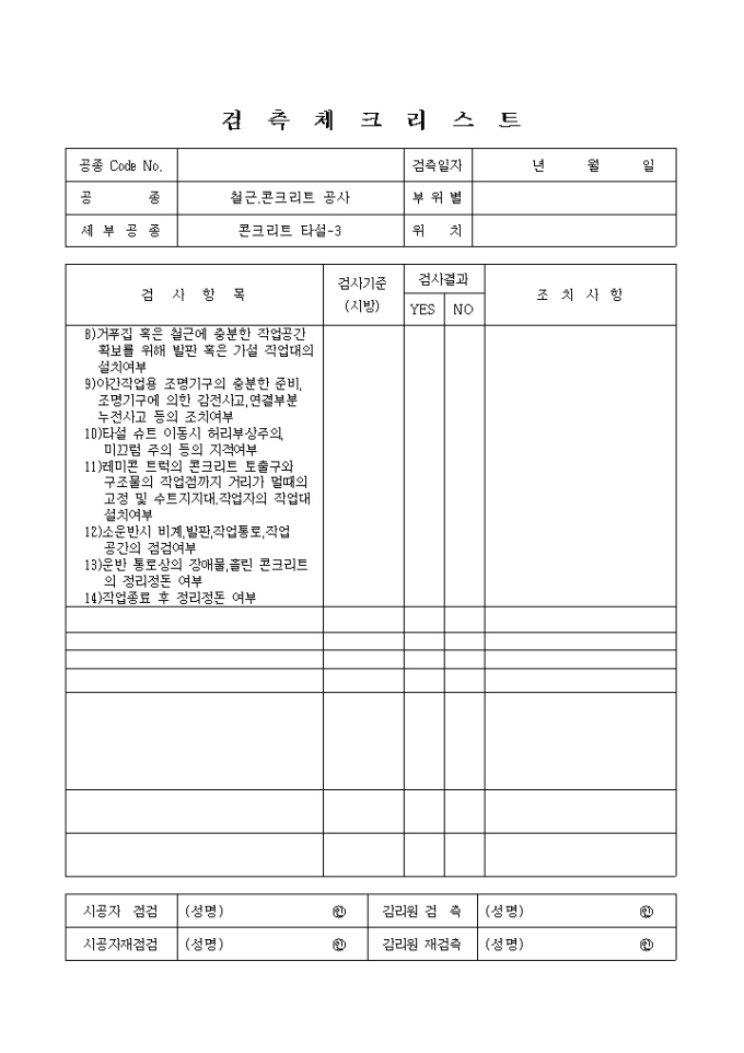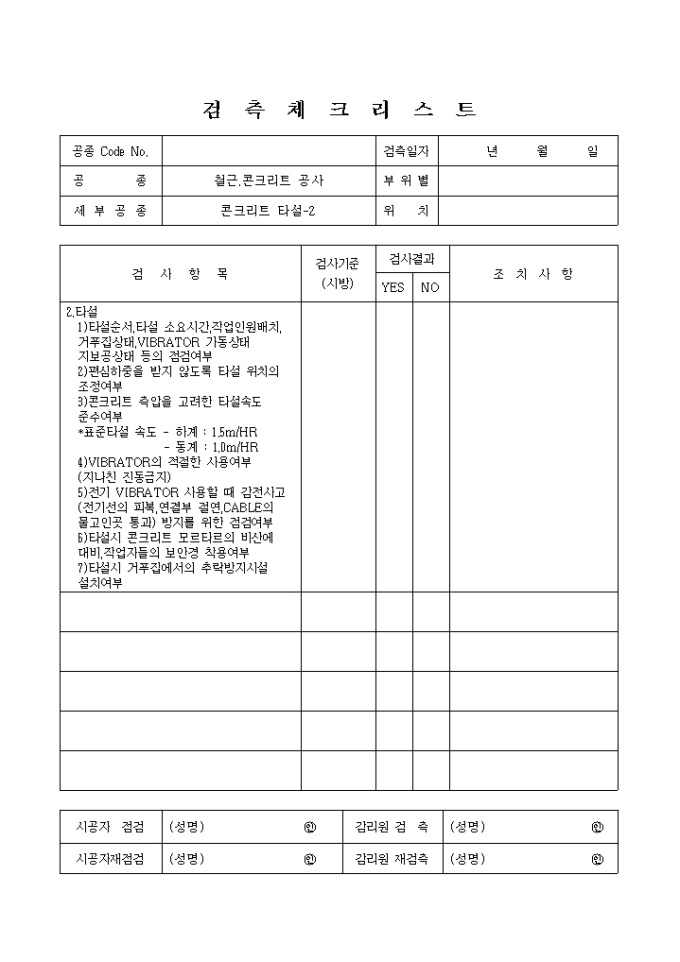 건축공사,콘크리트타설③ 체크리스트 입니다.