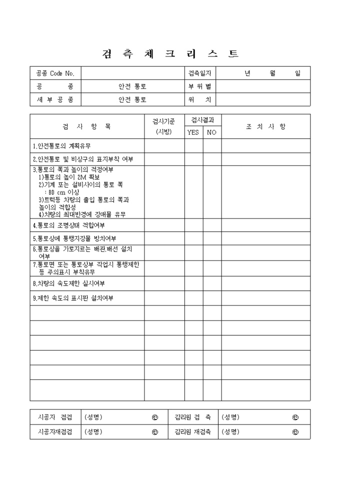 9,000원/월안전시설및설비,안전통로 체크리스트 입니다.