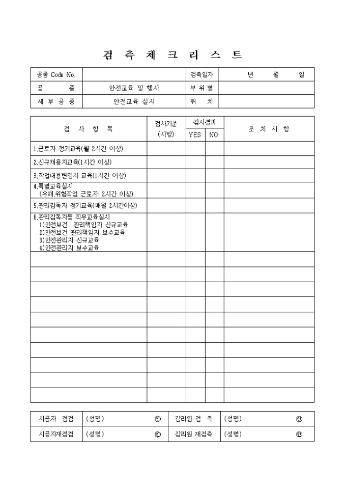 9,000원/월일반사항,안전교육실시 체크리스트 입니다.