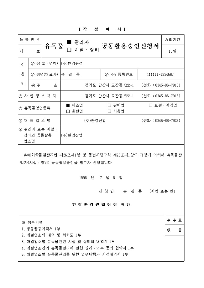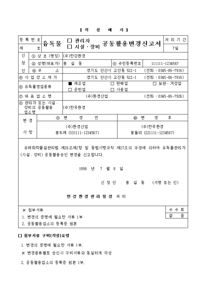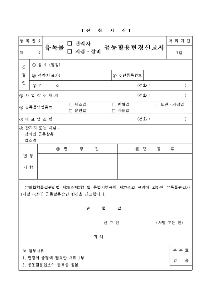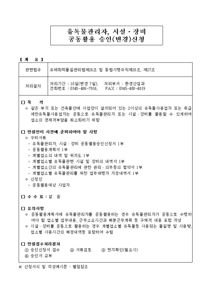유독물관리자, 시설·장비공동활용승인(변경)신청