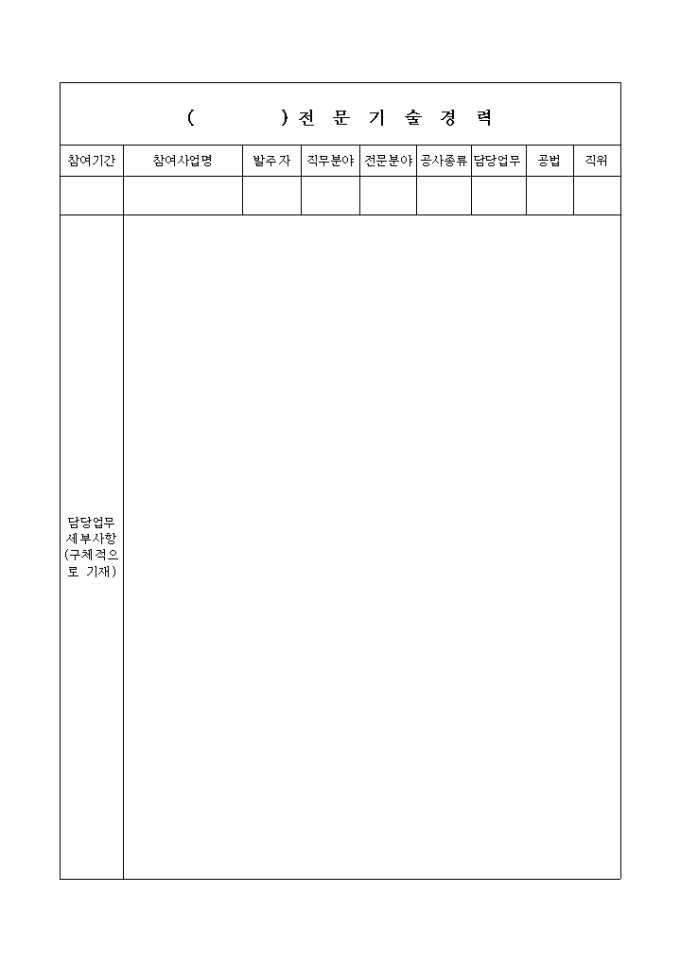 계약직 전문기술자 경력확인서