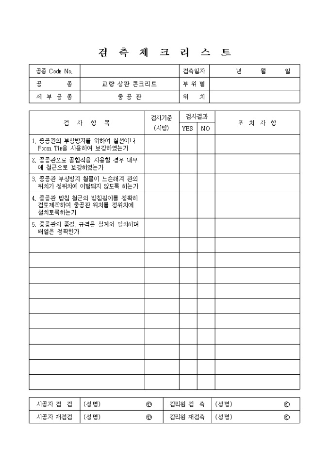 9,000원/월일반사항,교량상판콘크리트,중공관 검측체크리스트입니다.