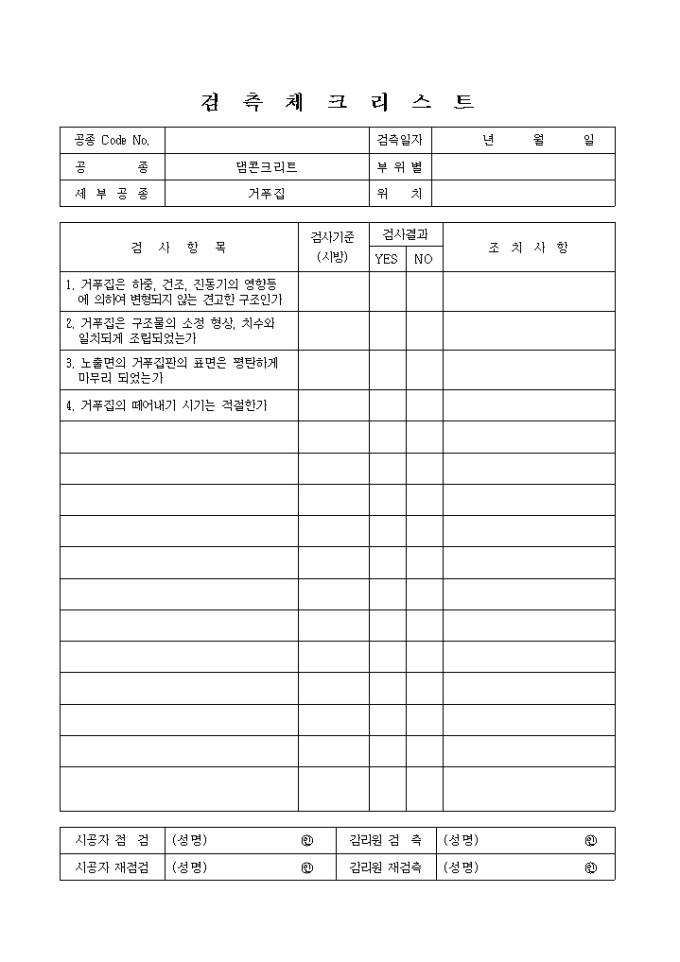 9,000원/월일반사항,댐콘크리트,거푸집② 검측체크리스트 입니다.