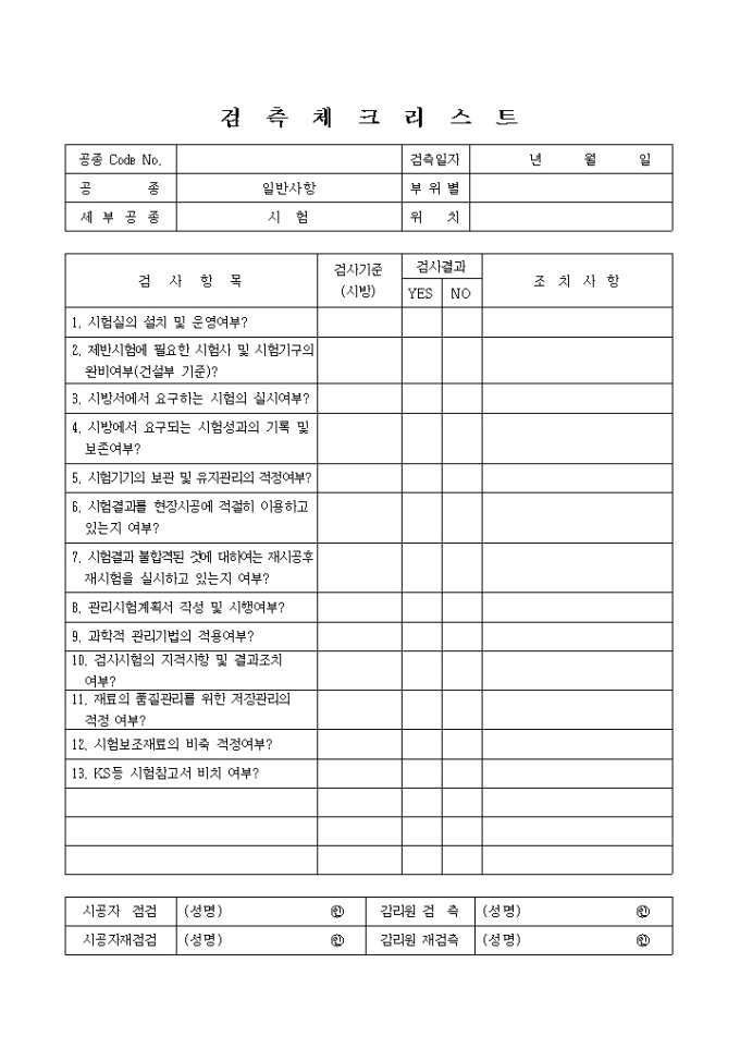 9,000원/월일반사항,시험① 검측체크리스트입니다.
