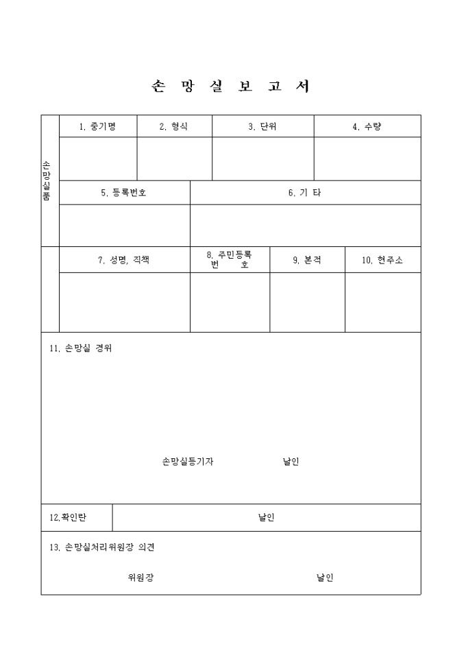 손망실품 내역과 손망실 경위를 기록하는 전기관련-손망실보고서입니다.