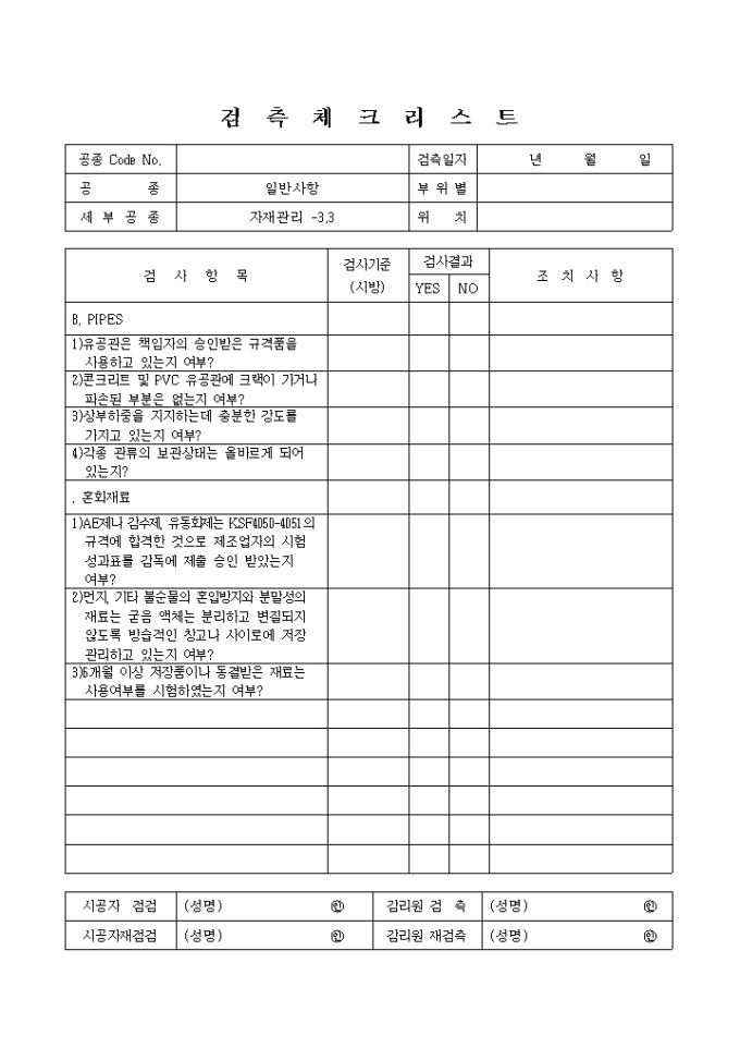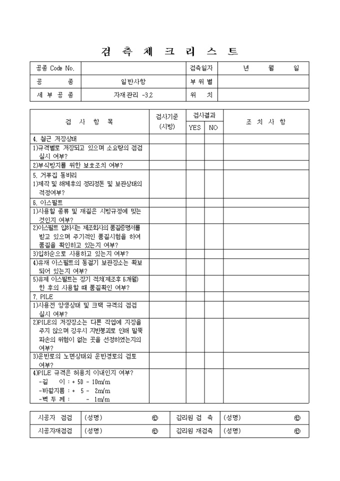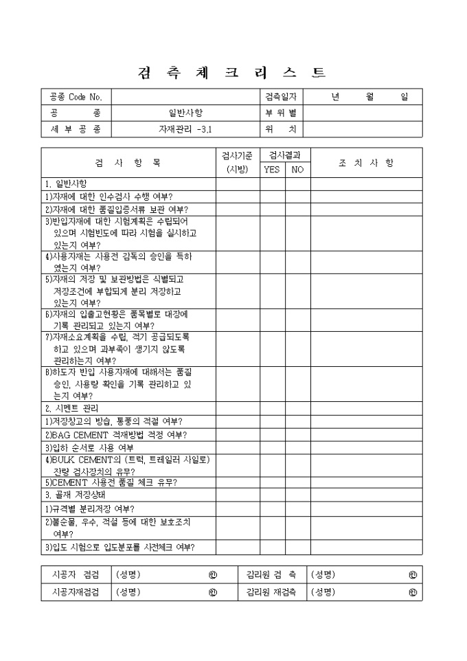 9,000원/월일반사항,자재관리 검측체크 리스트입니다.