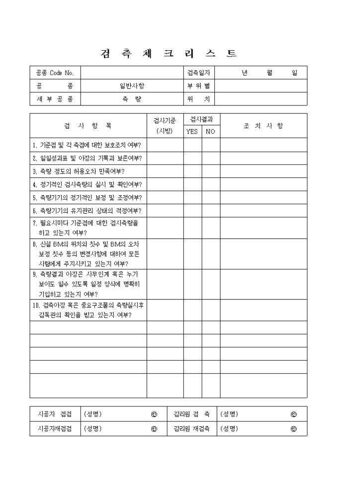 9,000원/월일반사항,측량① 검측체크 리스트입니다.