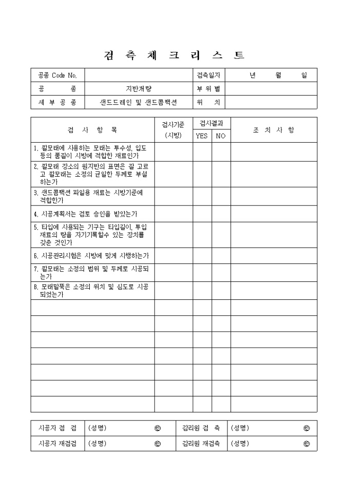 9,000원/월항만공사,샌드드레인및샌드콤팩션 검측 체크 리스트입니다.