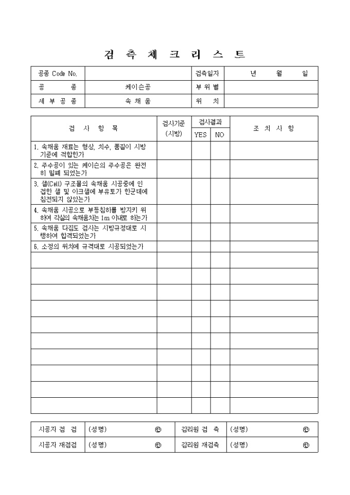 9,000원/월항만공사,속채움 검측 체크 리스트입니다.