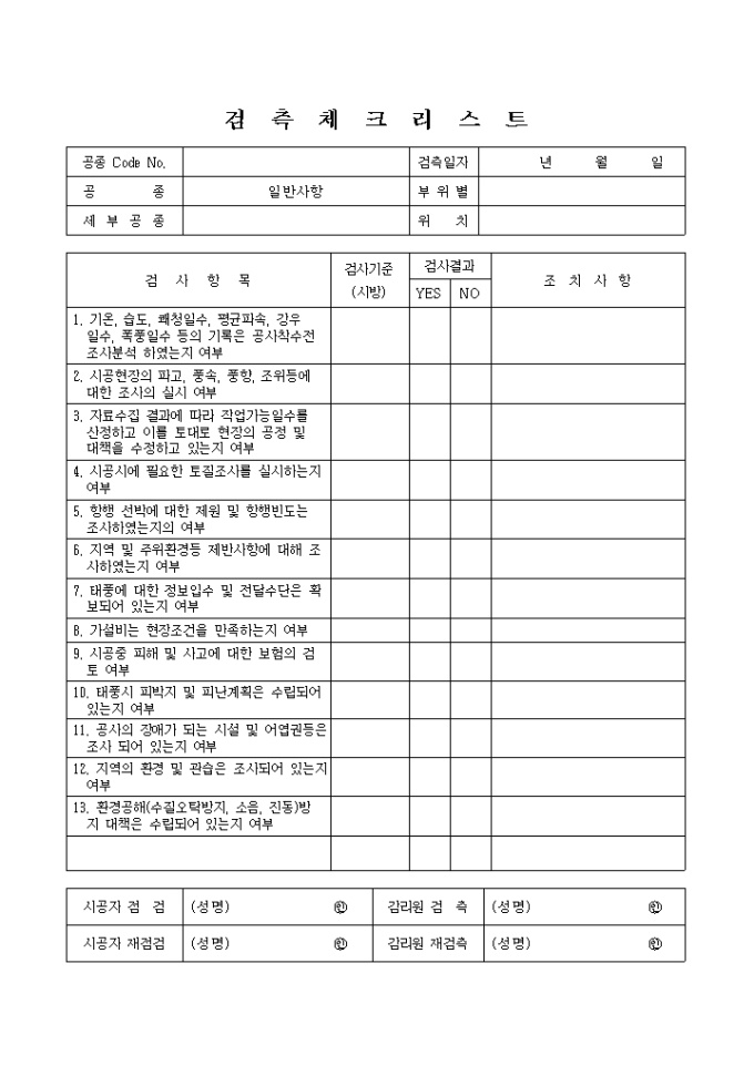 9,000원/월항만공사,일반사항ⓛ 검측 체크리스트 입니다.