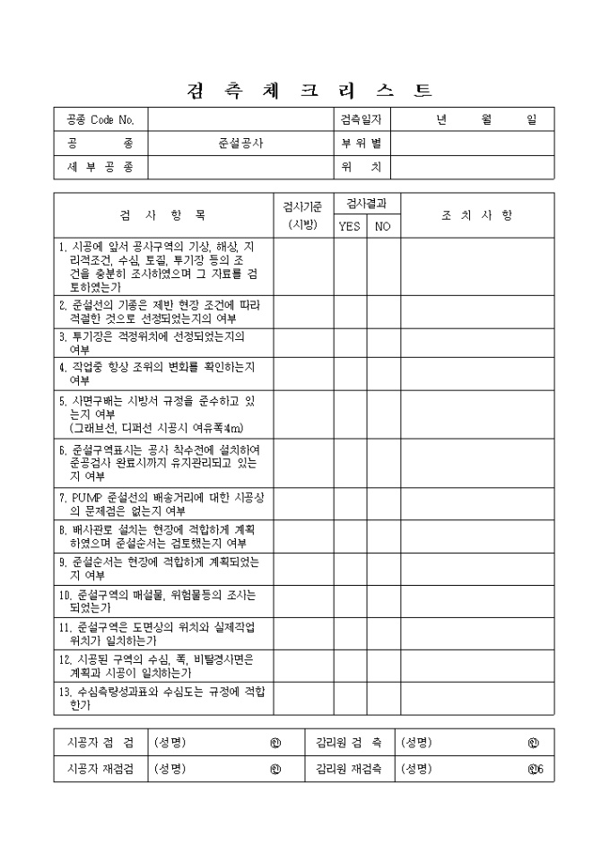 9,000원/월항만공사,준설공사① 검측 체크 리스트입니다.