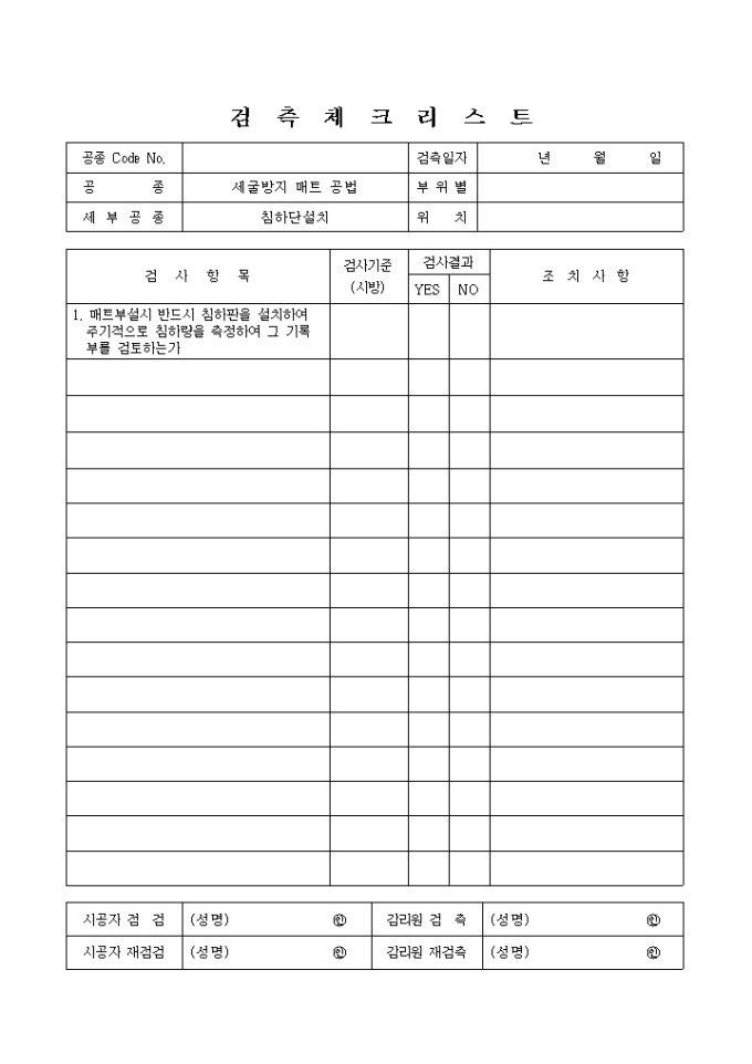 9,000원/월항만공사,침하단설치 검측 체크 리스트입니다.