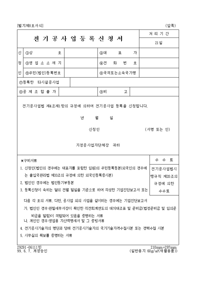 전기공사업 등록신청서