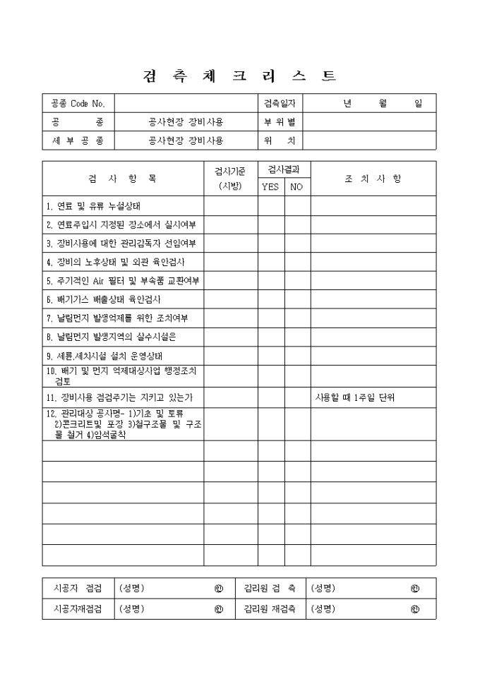 9,000원/월공사현장장비사용,공사현장장비사용① 체크리스트 입니다.