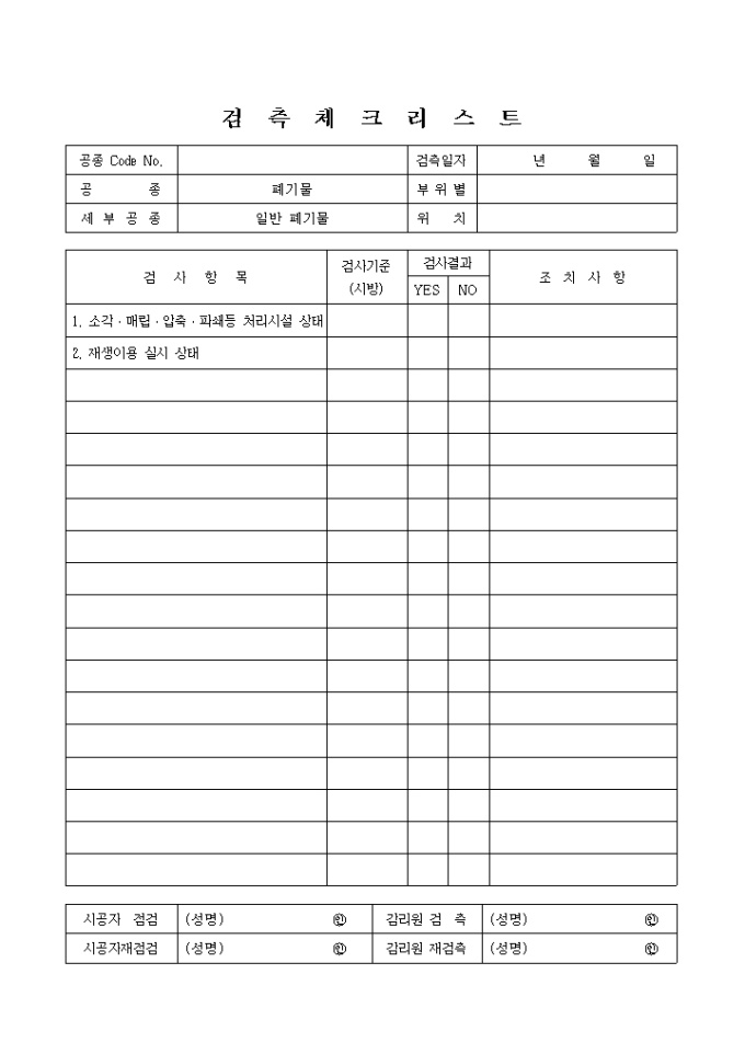 폐기물관리,일반폐기물 체크리스트 입니다.