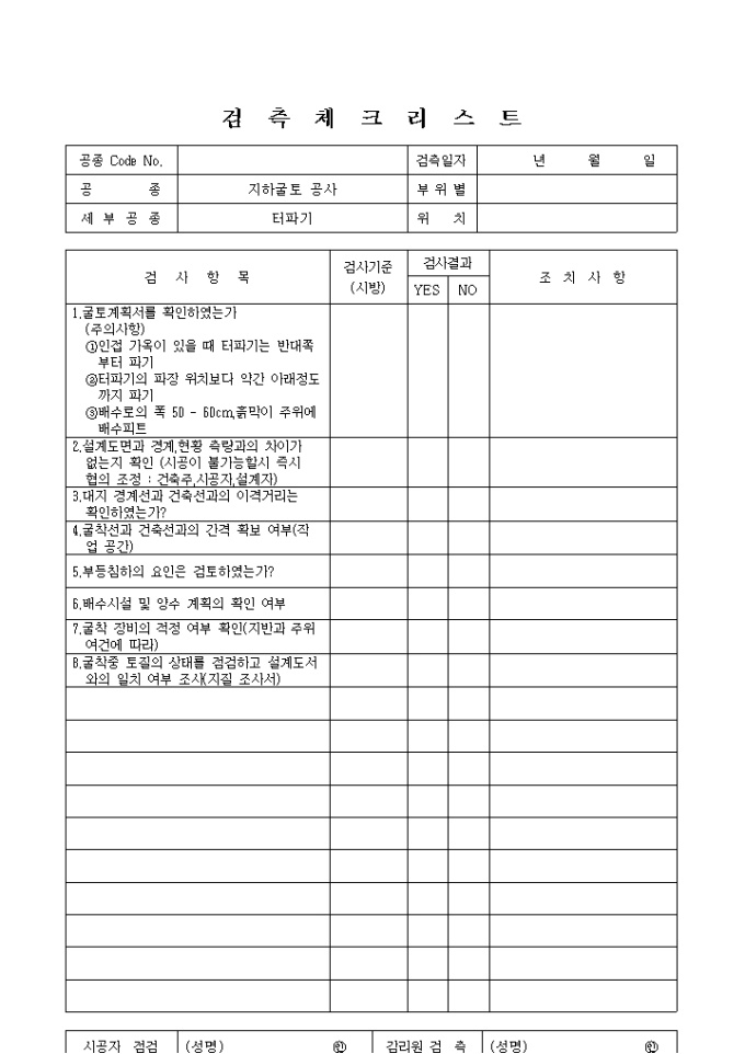 9,000원/월토목공사,지하굴토공사,터파기③ 체크리스트 입니다.