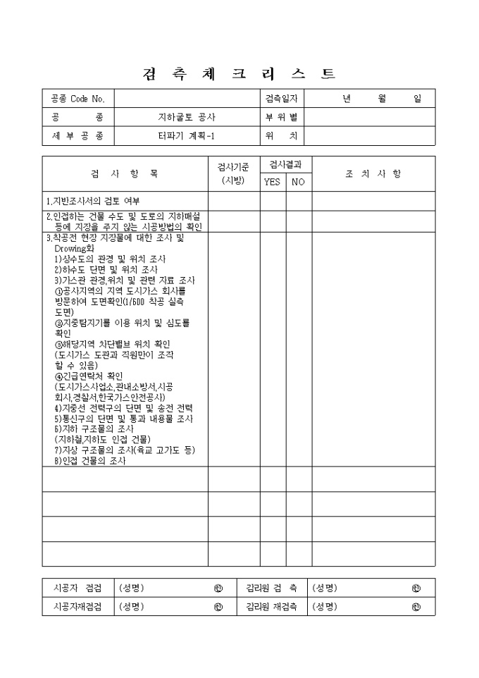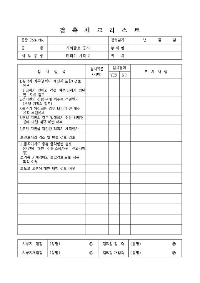 토목공사,지하굴토공사,터파기계획 체크리스트 입니다.