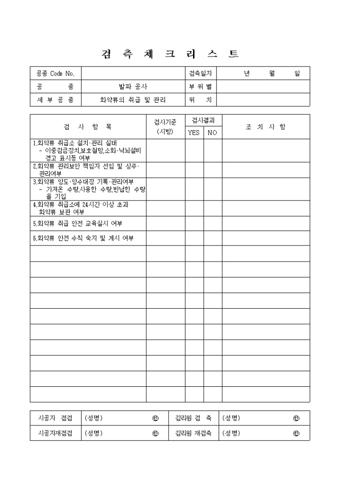 토목공사,화약류의취급및관리 체크리스트 입니다.