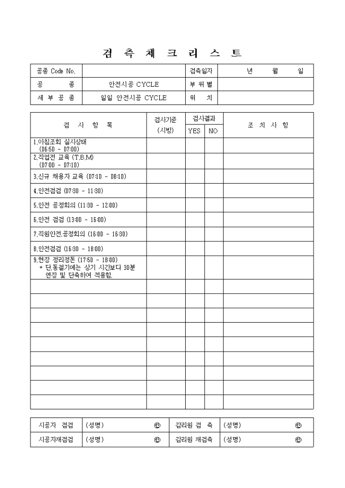 9,000원/월일반사항,일일안전시공CYCLE 체크리스트 입니다.
