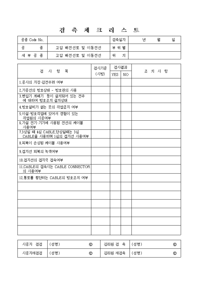9,000원/월전기설비공사안전관리,고압배전선로및이동전선 체크리스트 입니다.