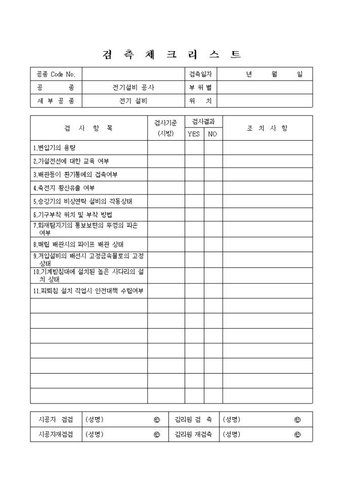 전기설비공사안전관리,전기설비 체크리스트 입니다.