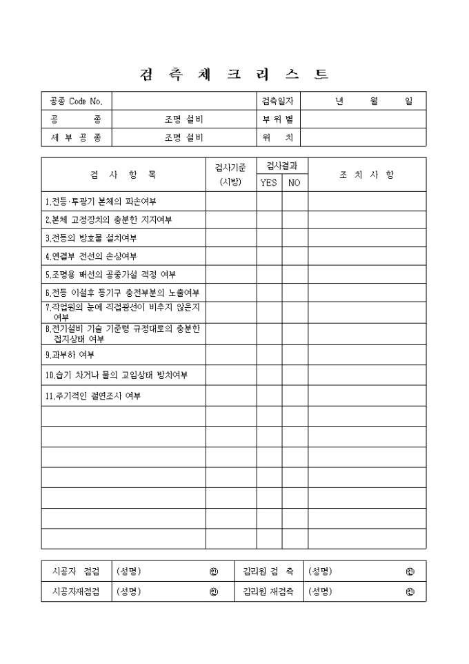 전기설비공사안전관리,조명설비 체크리스트 입니다.