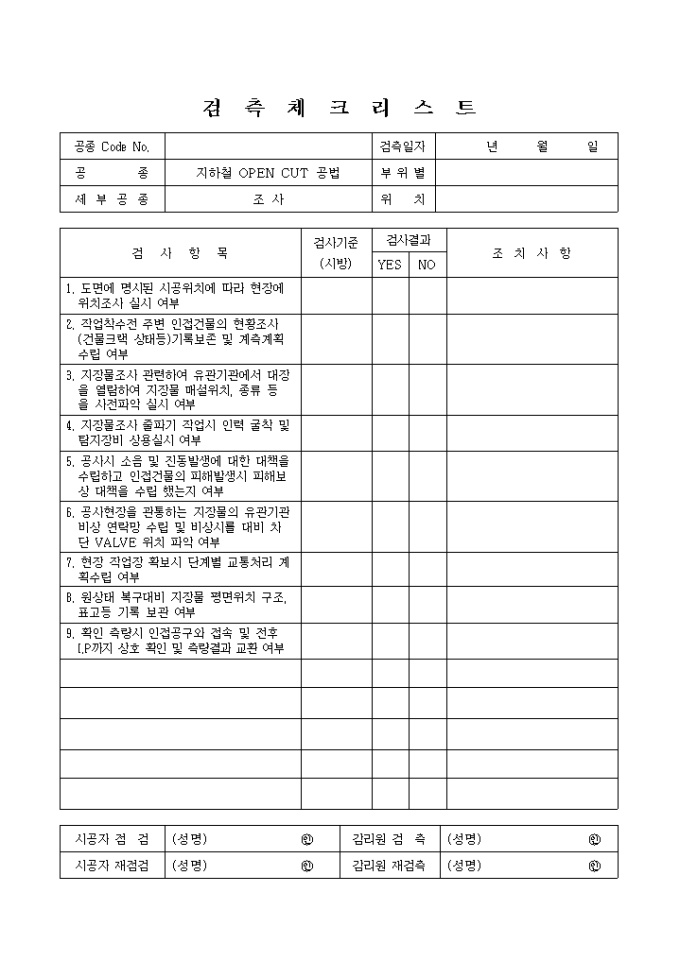 9,000원/월철도및지하철공사,지하철OPENCUT공법,조사① 검측 체크 리스트입니다.