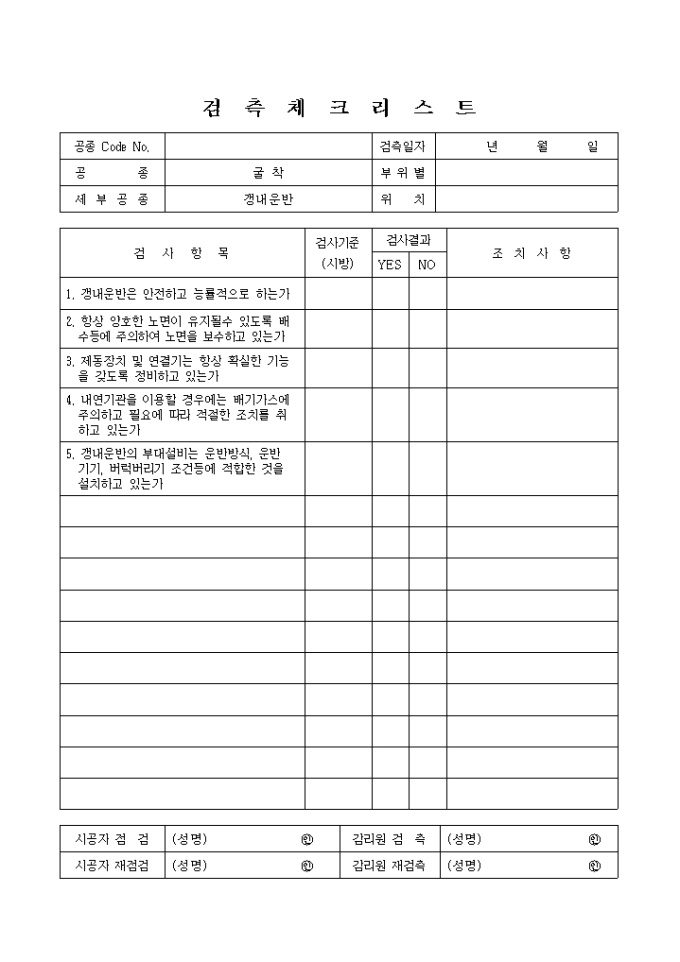 9,000원/월터널공사,굴착,갱내운반 검측 체크 리스트입니다.